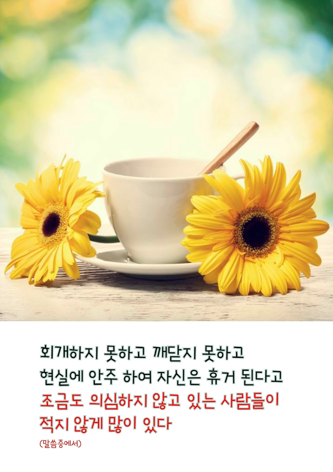 과거나 미래에 이루어질 일에 대해 중요성을 갖기보다 현재 지금 매일 매일의 상태에 촛점을 맞추고 사는 삶이 가장 옳바른 믿음의 자세인 것이다